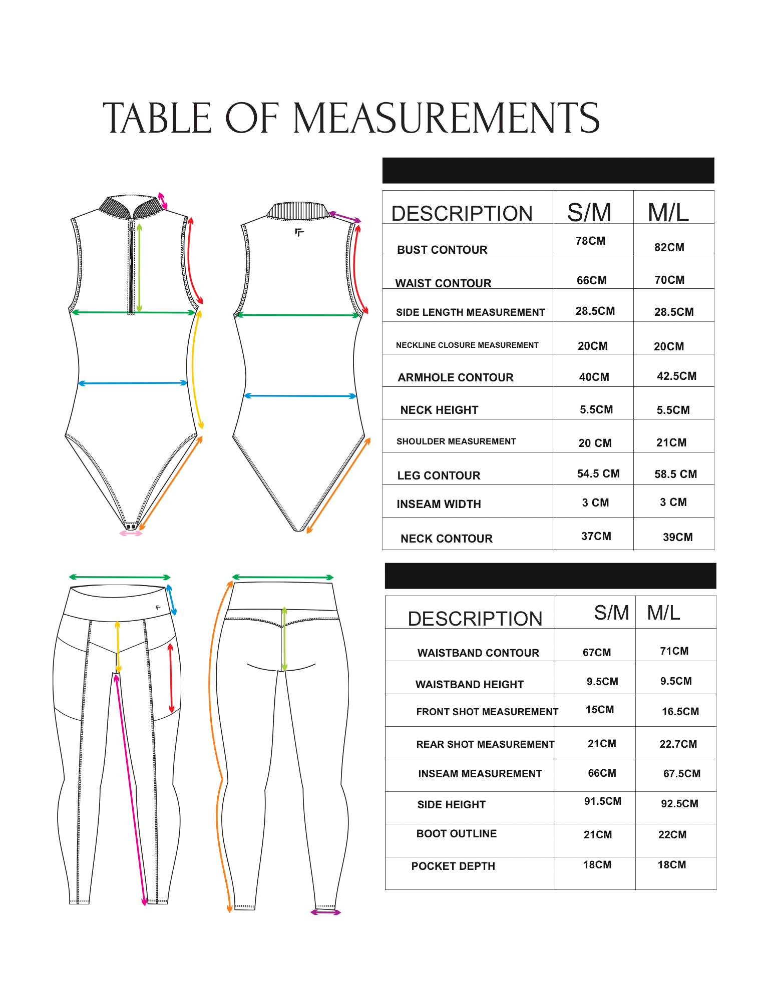 Sleek adjustable bodysuit with a front zipper, finished with elegant detailing on the collar and "Sculpting leggings featuring side pockets and sophisticated ankle accents. Where comfort meets elegance."